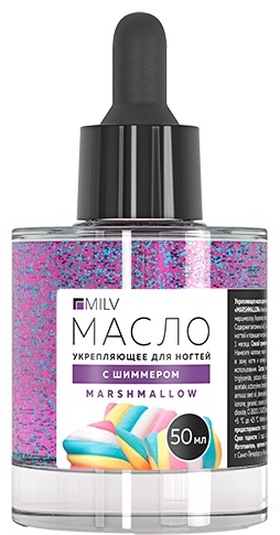 Укрепляющее масло для ногтей со смолой мастикового дерева и шиммером "MARSHMALLOW" 50мл. MILV